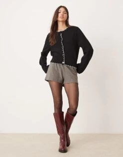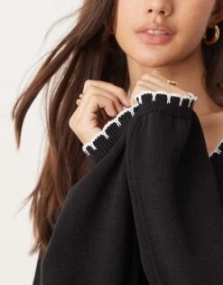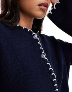 Miss Selfridge Blanket Stitch V Neck Cardigan For Women Black