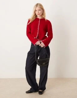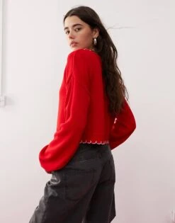 Miss Selfridge Blanket Stitch Knitted Cardigan In Red For Women