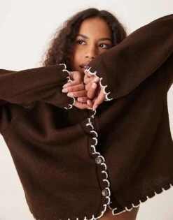 Miss Selfridge Blanket Stitch Cardigan In Chocolate For Women