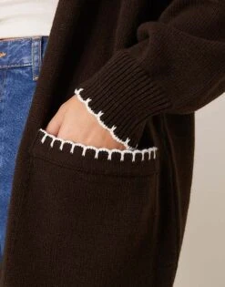 Miss Selfridge Blanket Stitch Maxi Cardigan In Chocolate For Women
