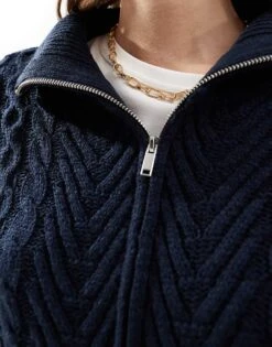 Miss Selfridge Cable Knit Zip Through Crop Cardigan In Cream For Women