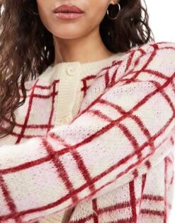 Miss Selfridge Check Button Through Cardigan For Women Red Check