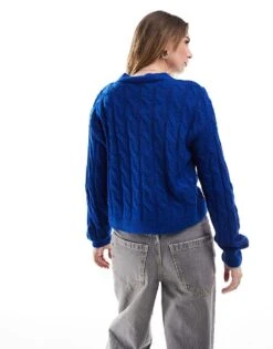 Miss Selfridge Chunky Cable Knit Cardigan In Bright Blue For Women