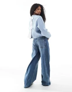 Miss Selfridge Contrast Bow Back Detail Sweatshirt In Blue For Women