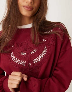 Miss Selfridge Embroidery Cut Out Detail Sweatshirt In Ecru For Women