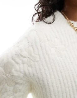 Miss Selfridge Faux Peal Cable Open Back Jumper In Cream For Women