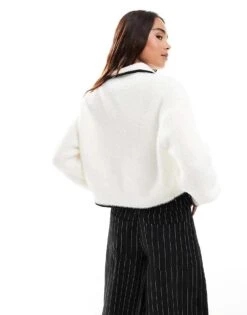 Miss Selfridge Lash Detail Tipped Button Through Collar Cardigan In Cream For Women