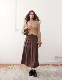 Miss Selfridge Knitted Frill Hem And Cuff Cardigan For Women Camel