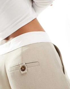 Miss Selfridge Petite Fold Over Waistband Trouser In Stone For Women