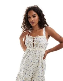 Miss Selfridge Petite Ribbon Detail Tie Front Mini Tea Dress In Polka Dot For Women Black Polka Dot