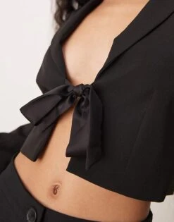 Miss Selfridge Petite Ribbon Detail Cropped Blazer In Black For Women