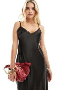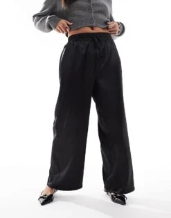 Miss Selfridge Petite Satin Wide Leg Trouser In Black For Women