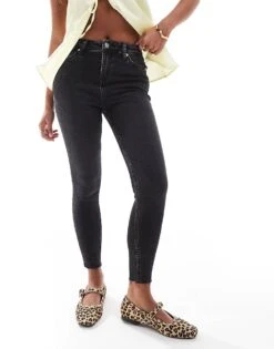 Miss Selfridge Petite Skinny High Waist Jean In Black Wash For Women