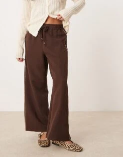 Miss Selfridge Petite Side Stripe Jogger In Chocolate For Women