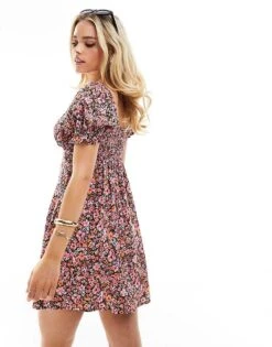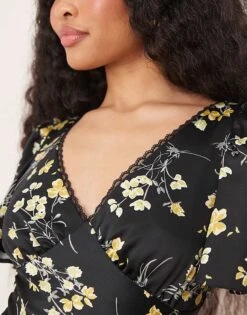 Miss Selfridge Petite Tie Shoulder Cowl Neck Slip Dress In Brown Large Floral Print For Women Multi