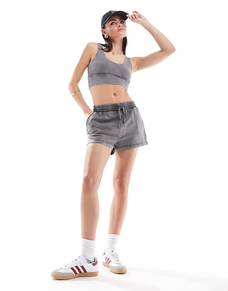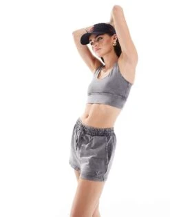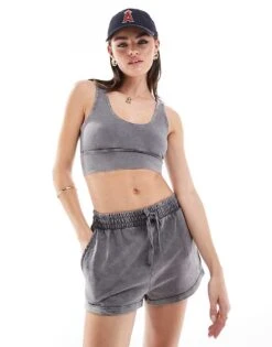 Miss Selfridge Acid Washed Bralette Co-ord In Grey
