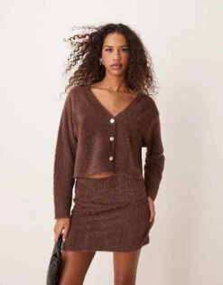 Miss Selfridge Brushed Knit Co-ord In Chocolate
