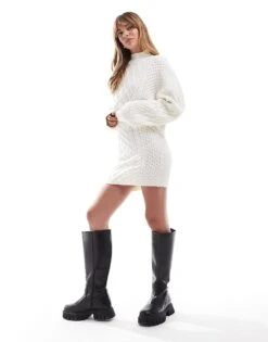 Miss Selfridge Cable Knit Jumper Co-ord In Cream