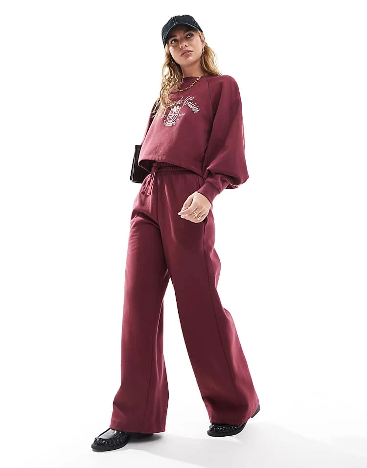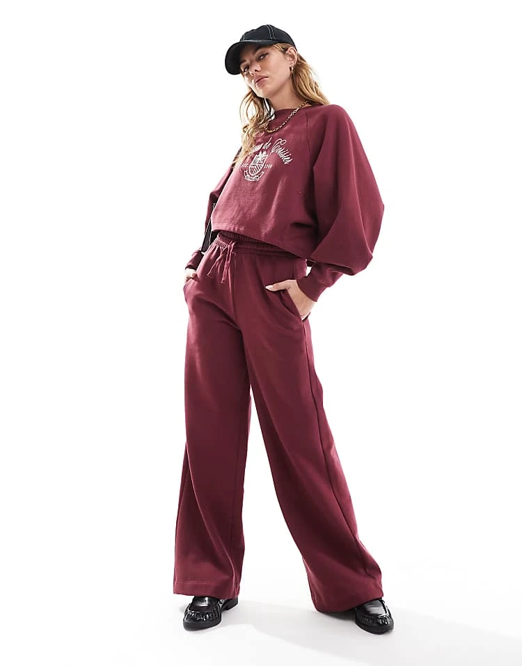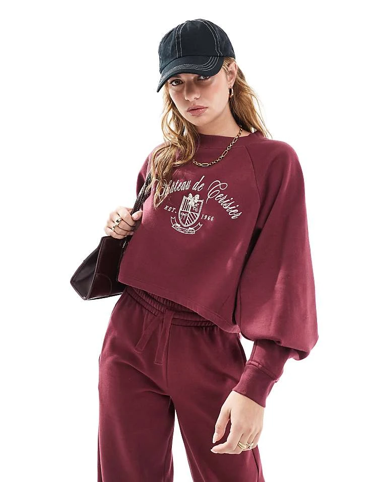 Miss Selfridge Chateau De Cerisies Sweatshirt Co-ord In Burgundy