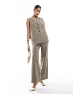 Miss Selfridge Co-ord Tailored Wide Leg Trouser In Khaki
