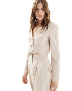 Miss Selfridge Cropped Blazer Co-ord In Taupe Fleck