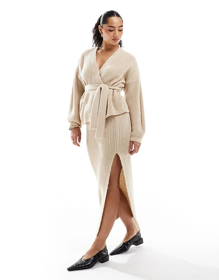 Miss Selfridge Knit Maxi Skirt Co Ord In Stone