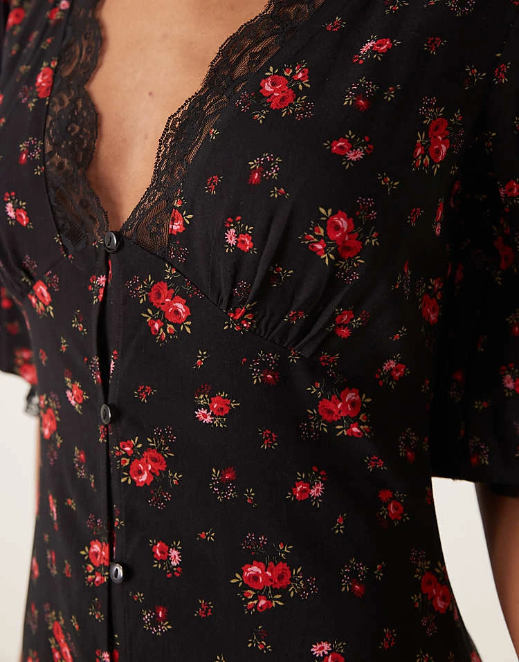 Lace Trim: 100% Nylon, Shell: 100% Viscose.