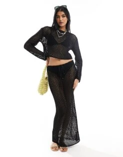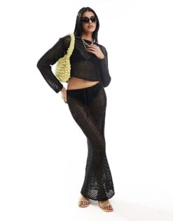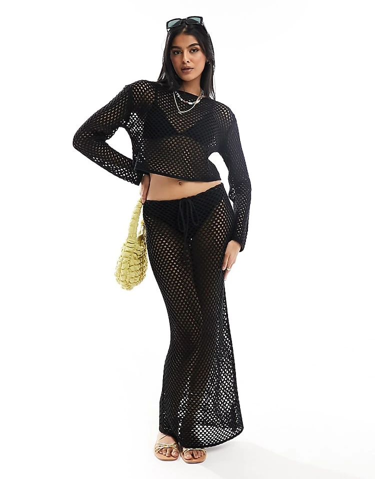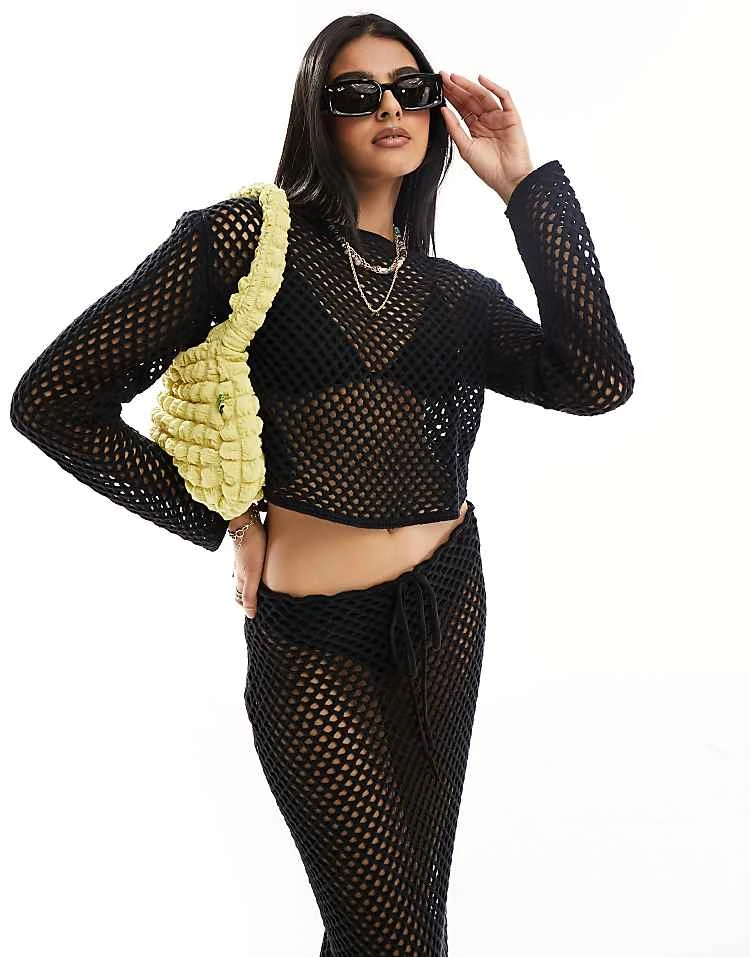 Miss Selfridge Open Knit Crochet Set In Black