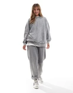 Miss Selfridge Oversized Acid Wash Sweatshirt Co-ord In Grey