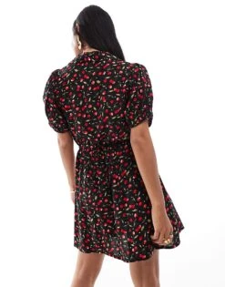 Miss Selfridge Petite Long Sleeve Mini Tea Dress In Ditsy Floral Print For Women Black Floral Print