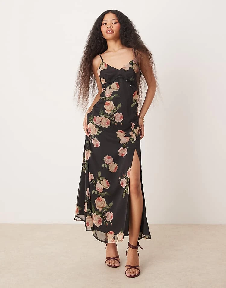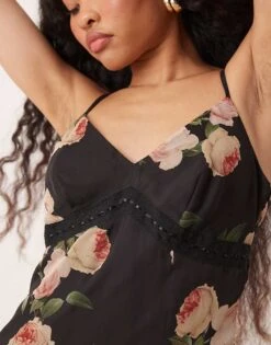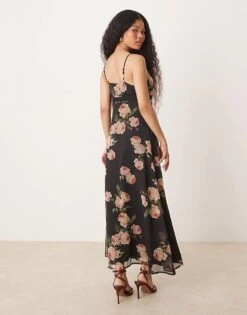 Miss Selfridge Petite Tie Shoulder Cowl Neck Slip Dress In Brown Large Floral Print For Women Multi