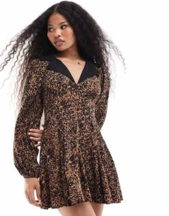 Miss Selfridge Petite Long Sleeve Mini Tea Dress In Ditsy Floral Print For Women Black Floral Print
