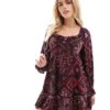 Miss Selfridge Petite Long Sleeve Mini Tea Dress In Ditsy Floral Print For Women Black Floral Print