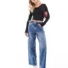 Miss Selfridge Petite Long Sleeve Mini Tea Dress In Ditsy Floral Print For Women Black Floral Print