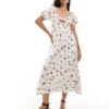 Miss Selfridge Petite Long Sleeve Mini Tea Dress In Ditsy Floral Print For Women Black Floral Print