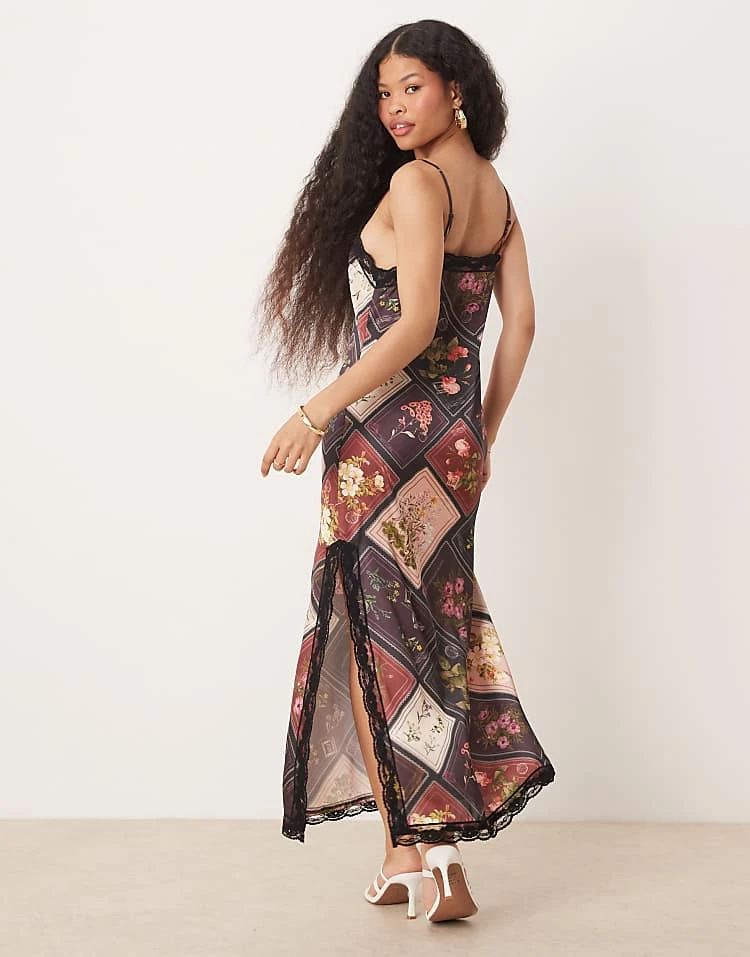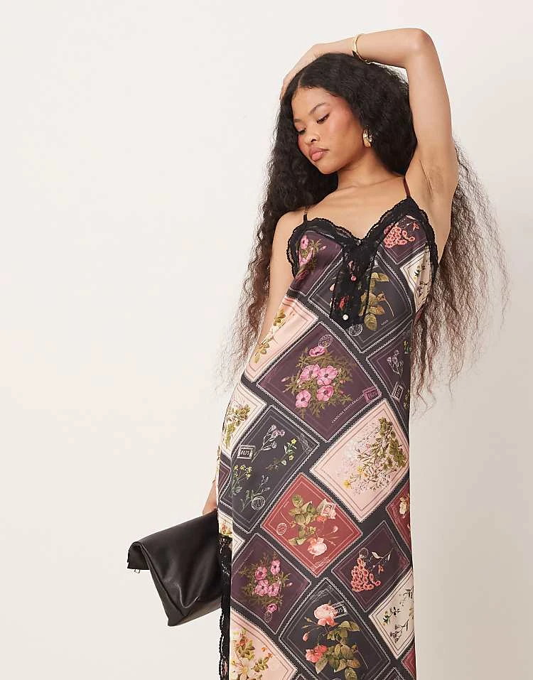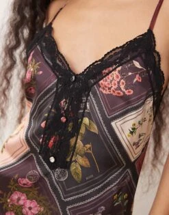 Miss Selfridge Petite Tie Shoulder Cowl Neck Slip Dress In Brown Large Floral Print For Women Multi