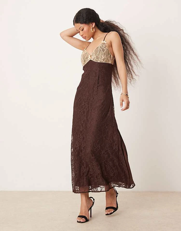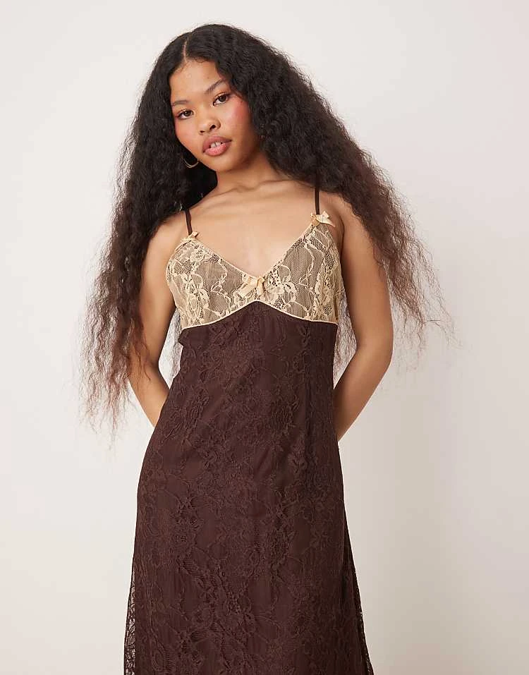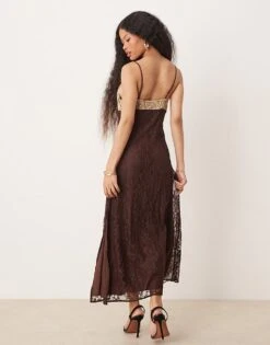 Miss Selfridge Petite Tie Shoulder Cowl Neck Slip Dress In Brown Large Floral Print For Women Multi