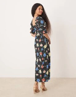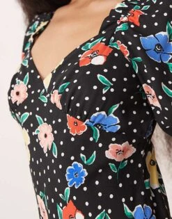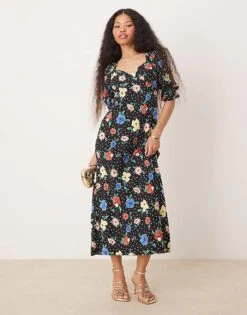 Miss Selfridge Petite Tie Shoulder Cowl Neck Slip Dress In Brown Large Floral Print For Women Multi