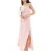 Miss Selfridge Petite Tie Shoulder Cowl Neck Slip Dress In Brown Large Floral Print For Women Multi