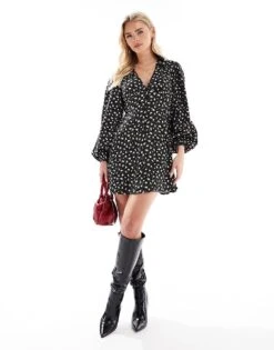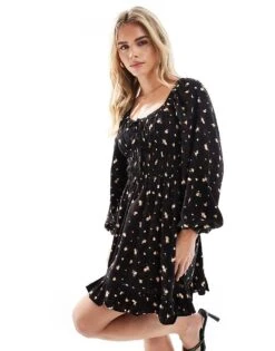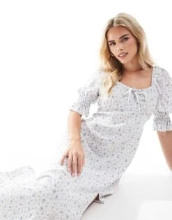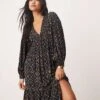 Miss Selfridge Petite Tie Shoulder Cowl Neck Slip Dress In Brown Large Floral Print For Women Multi