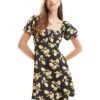 Miss Selfridge Petite Long Sleeve Mini Tea Dress In Ditsy Floral Print For Women Black Floral Print