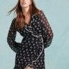Miss Selfridge Petite Long Sleeve Mini Tea Dress In Ditsy Floral Print For Women Black Floral Print