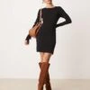 Miss Selfridge Petite Long Sleeve Mini Tea Dress In Ditsy Floral Print For Women Black Floral Print