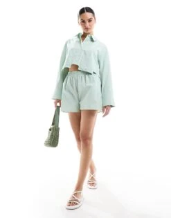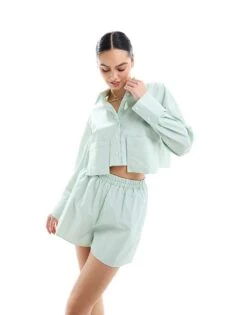 Miss Selfridge Poplin Co Ord In Sage Stripe