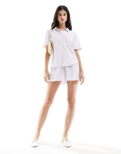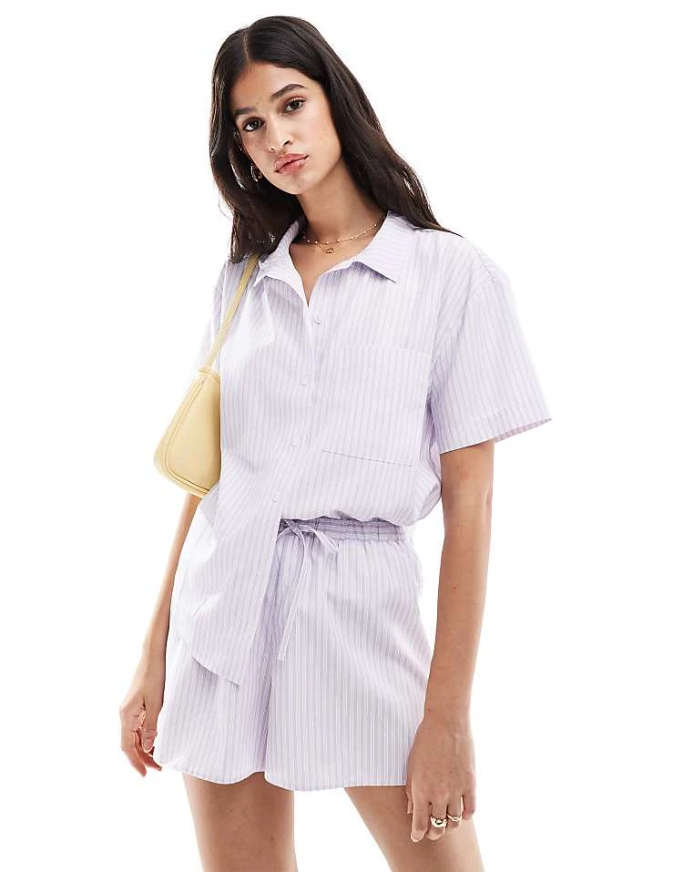 Miss Selfridge Poplin Pull On Shirt Co Ord In Lilac Stripe