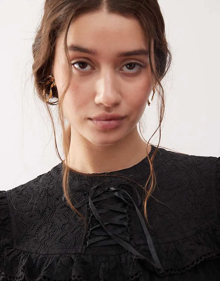 - Lace-up ribbon detail