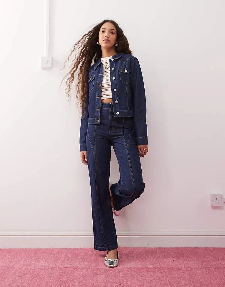 Miss SElfridge Seamed Detail Wide Leg Trouser In Indigo