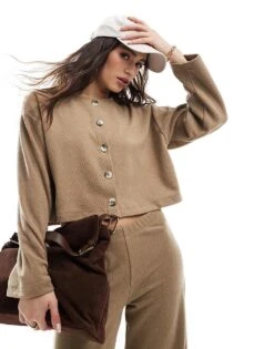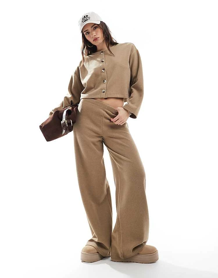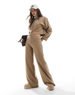 Miss Selfridge Soft Rib Wide Leg Trouser Co Ord In Beige