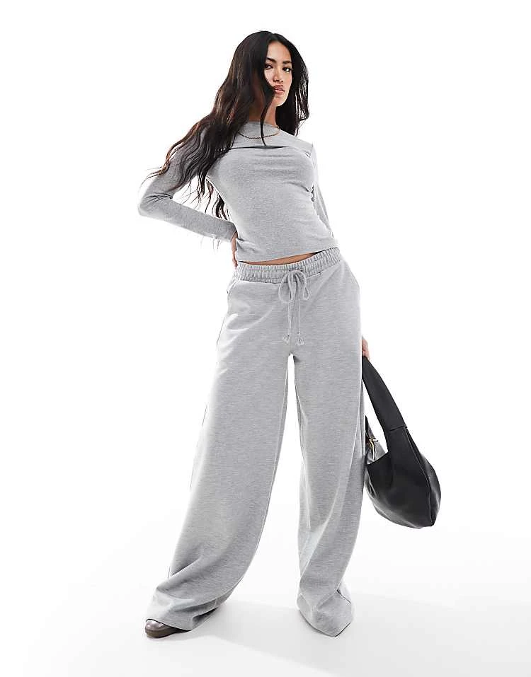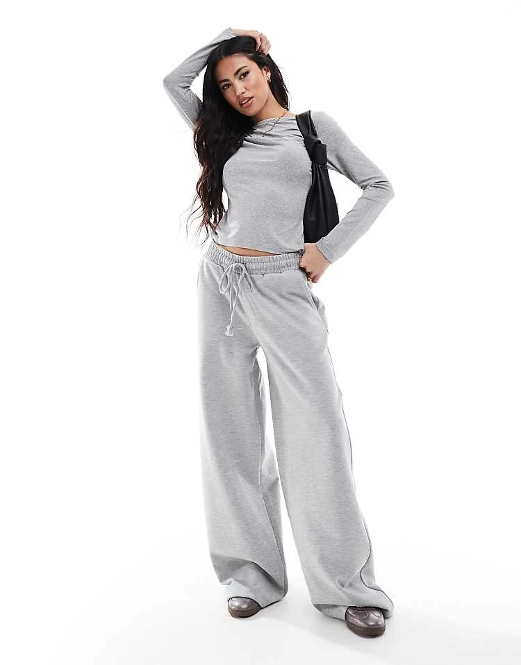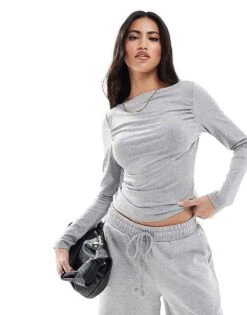Miss Selfridge Soft Touch Ruched Long Sleeve Top Co Ord In Grey Marl