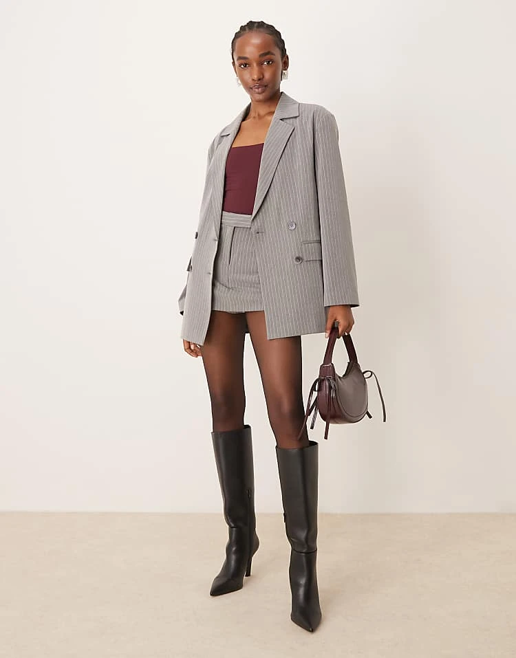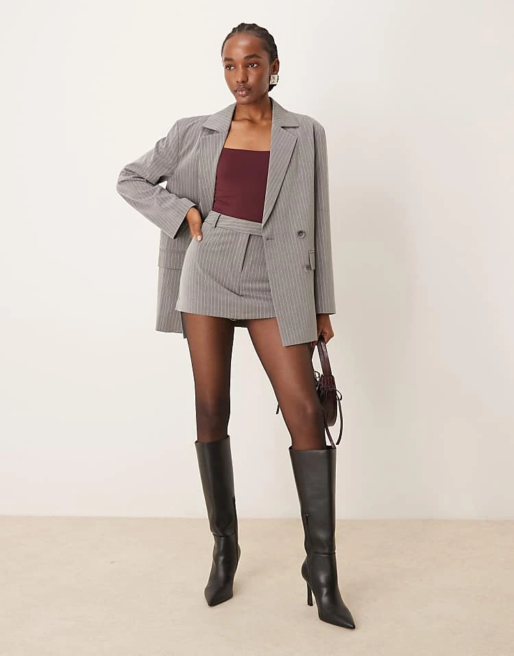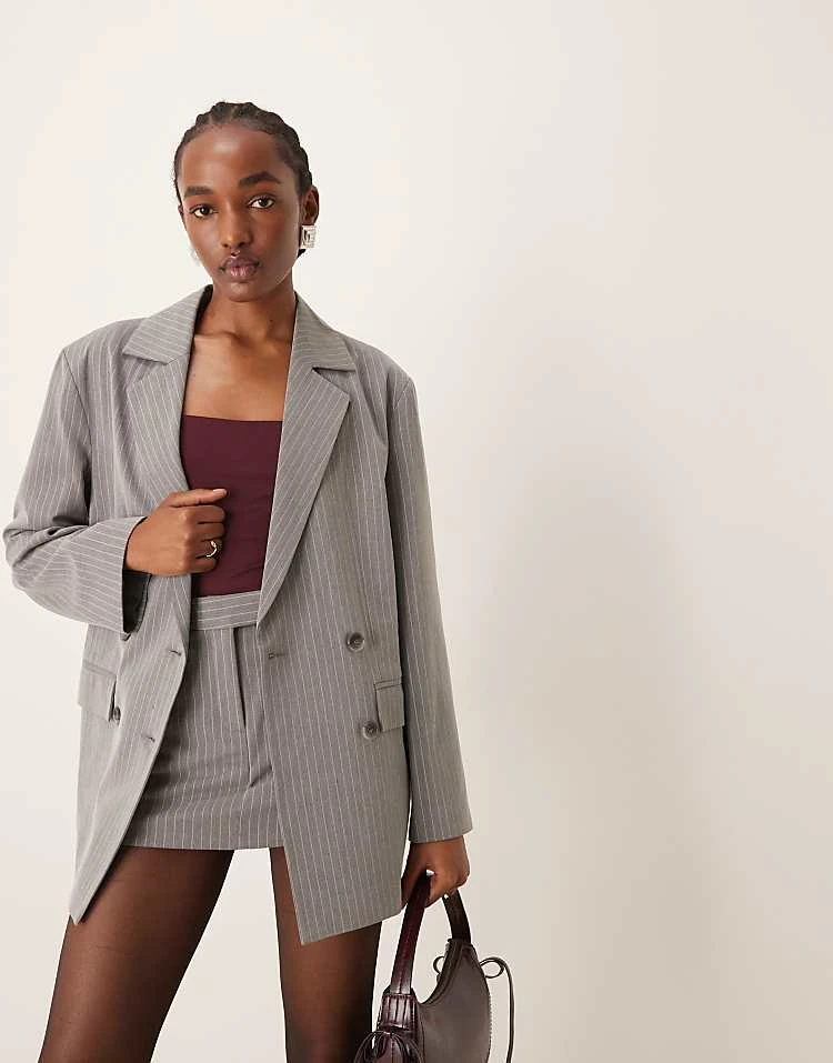 Miss Selfridge Tailored Blazer Co-ord In Grey Pinstripe